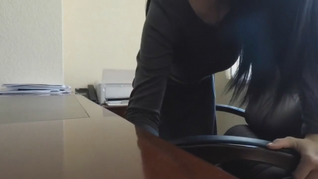 Работая в классной конторе и зарабатывая приличные деньги, довольно трудно получить премию лучшей сотрудницы месяца из всего огромного штата бухгалтеров. Не особо ясно, из-за чего конкретно она ее получила - из-за усердной и продуктивной работы, либо же за красивые глаза, ведь судя по фигуре, скорее всего они там присутствуют. И когда все свалили из офиса, деваха решила устроить себе расслабон и праздник, поэтому быстренько спустила обтягивающие штаны и решила как следует помаструбировать, улыбаясь во весь рот - вечером она наконец-то купит себе новую шубу из норки.