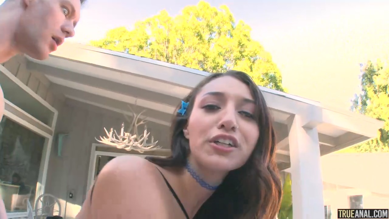 Стандартный набор декораций для ебли - задний двор коттеджа, большой бассейн, и как бы невзначай стоящий диван прямо на краю водоема, чтобы кадр был сочнее и падать было веселее. А теперь перейдем к актрисе - шикарная девчуля латиноамериканского происхождения со слегка висящими сиськами и смачной жопой уже готова обслуживать первый член, что ей предложат. И покрутив пятой точкой перед камерой, ожидание не заставило себя долго ждать - чувак подлетел молниеносно, трахнул ее анус языком, а после минета уже пошел по полной программе разъебывать ей очко.