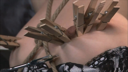 Саша Грей как всегда на высшем уровне. Девушка в сексуальном нижнем белье и черных чулках буквально сводит с ума своими внешними данными. Телочке вставили в попку железный крюк и связали. На соски и письку нацепили прищепки, ее к тому же отшлепали и трахнули вибратором. Но казалось бы грубость доставляет Саше невиданное удовольствие - ведь она так сладко стонет. А когда няшку отвязали, она трахнулась с черным мужиком (он отдолбил стройную малышку в зад).