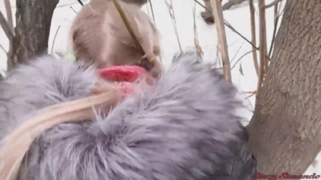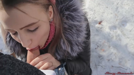 Безбашенная парочка морозит задницы зимой в лесочкеHD