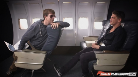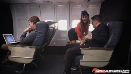 Интересный экспериментальный рейс выдался у авиаперевозчика. Начальство приказало стюардессам вести себя более открыто с пассажирами бизнес-класса, даже развязно. Девушки все как на подбор фигуристые красавицы, а одна из них, идущая на повышение, сделала приятно молодому человеку, попросившего помощи. Его сосед по сиденью обратил внимание, что бортпроводница строит ему глазки и уговорил подойти и завязать разговор, перешедший в трах прямо в кресле самолета. Все остальные не обращают внимание на любовников, надеясь, что им так же повезет при следующем полете.