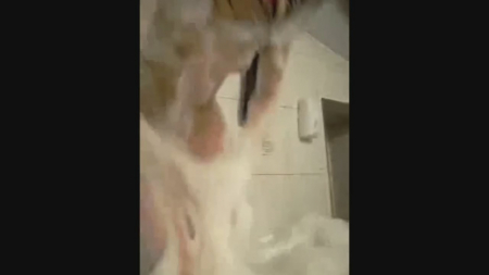 Алкоголь так расслабил мозг худенькой девочки из дружественной республики, что она начала танцевать голая перед молодым человеком. Большой джакузи не только с легкостью вмещает парочку, но и есть где развернуться голой казашке, чье тело покрыто пеной. Танец более эротический чем простой, в кадр попала гладкая писечка стройной малышки, на чье тело не хватило сисек у создателя. Нам же придется фантазировать про брюнеточку, а приятель в этом время ее поебывает под эпичную современную музыку, вызывающую тошноту за пару куплетов.