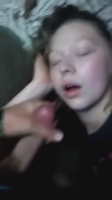 Парень с подругой крепко выпил спиртного и она рубанулась спать, оставшись до вечера. Слишком уж крепко она уснула. Когда пришло время будить, не удалось даже чуть привести в сознание упоротую дурочку. Чувак прошел играть в видеоигры, а потом подумал: а почему бы не подрочить хуй на ее еблет? Он заснял самый последний момент попадания кончи на губы широко открытого рта. Как бы молодо не выглядело лицо шлюшки, она совершеннолетняя. А вообще не хватает фрагмента с реакцией, не стал же в самом деле он вытирать ей рот салфеткой.