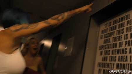 В одном интимном магазине есть комната, в которой дамочки могут пососать член или потрахаться с незнакомцем. И комната пользуется большой популярностью и очень большим спросом. Причем нет отбоя ни в похотливых дамочках, ни в мужчинах (которые оказывают подобные услуги). Двум подругам невероятно повезло - ведь через дыру в стене был просунут огромный черный фаллос, которым ниггер довел до сквирта телку.