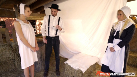 Это довольно странно, но родители молодой привлекательной девушки решили с кем она займется сексом. И для этих целей (по мнению родителей) подходит городской парень. Мама сама обмыла сексуальную куколку и привела на сеновал. Папа указал место, где устроить ложе для любовников. Девушка встала на это импровизированное ложе раком, половину ее тела закрыли простыней (как перегородкой). Парень вошел в девушку сразу - без прелюдий. И оттрахал ее не только в вагину, но и еще в две дырки.