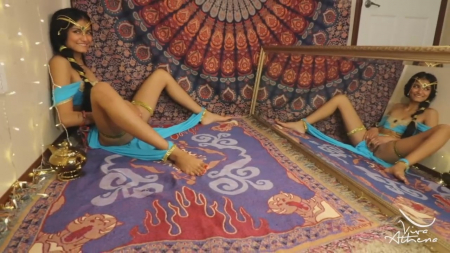 Пока Аладдин покоряет соседние царства и играет в героя, его суженая принцесса Жасмин сильно загрустила, ведь некому удовлетворять королевскую похоть прекрасной брюнетки в красивом восточном одеянии. К счастью, Джинн остался дома, поэтому девушка воспользовалась его лампой, трахнув пизденку носиком лампы перед зеркалом. Откуда-то взялся вибратор, но довольно быстро Жасмин вызвала заточенное мифическое существо, отсосав его синий хуй на полу, а в это время он улыбался застывшей пугающей улыбкой. Конечно простолюдину в белых шароварах они ничего не расскажут.