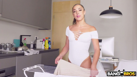 В дверь постучала симпатичная девушка, представившаяся Анастасией. Она сегодня здесь работает свой первый день домработницей и многие вещи будут в новинку. Нет, она знает как мыть посуду и полы, убирать вещи, но все же небольшое волнение присутствует. Хозяин сразу обратил внимание на хорошую фигуру латинки и слегка выпирающую спереди "верблюжью лапку" из-за обтягивающих коротких лосин. Первые чаевые поступили когда мужчина попросил показать тело, потом раздеться, а в итоге уговорил заняться сексом, продемонстрировав здоровый каменный стояк. Вышеперечисленные факторы повлияли на решение горничной и она страстно продала честь, испытав оргазм сквиртом в самом конце.
