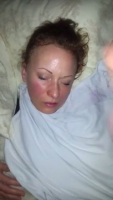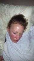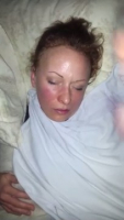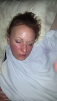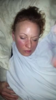 Больше эта алкоголичка так не станет напиваться и оставаться в гостя у подруги. Сорванец, узнав что в соседней комнате спит пьяная мамкина знакомая, дождался когда в доме погаснет свет и пробрался к ней на кровать. Он почему-то был уверен, что тетка не проснется и не спалит его с членом в руке. Достаточно быстро парень обдрочился и начал кончать, едва достав струей спермы до лица, зато достаточно сильно испачкал постельное белье. Утром придется отвечать на неудобные вопросы по поводу желтых пятен на одеяле гостьи, хотя та подумает, что сама замарала. Все свои действия злодей снимал на телефон.