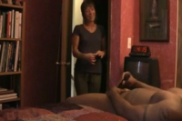 Ничего необычного на первый взгляд на происходит. Чел лежит на кровати и дрочит член. Камера стоит чуть сбоку позади, мало ли кто там что снимает когда остается дома один. Но вот только извращенец знает, что должна подойти недавно нанятая уборщица с вопросами и советами по уходу за предметами мебели. Говорить женщина начала еще до захода в комнату, а как попала внутрь, то вообще забыла зачем приходила. Быстро обговорив моменты с нанимателем, она тихонько закрыла за собой дверь, не отрывая взгляда от эрегированного пениса в руке парня.