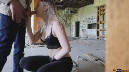 Как-то раз ребята катались вместе на велосипедах, забредая по самым нелюдимым уголкам города, о которых даже не подозревали. Перед глазами мелькнула заброшка, врезавшаяся в память как альтернативное место, где стоит попробовать потрахаться, если будет возможность пробраться внутрь. Оказалось на следующий день, что никаких заборов, замков и прочей охраны тут нет. В этот раз парочка добралась до места на автобусе. Девушка повесила рюкзачок на стенку, запустив ручку в красивые трусики. Пошалив немного одна, она начала сосать член приятеля, застонав чуть позже от пропиха загнувшись со спущенными штанами, разнося шлепки и стоны в недострое среди строительной пыли.