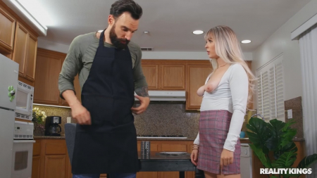 Поприветствовав мисс Белл, бородатый парень продолжил подметать кухню. Он старается не обращать внимания на ее не первые странные выходки. На этот раз она специально обронила стакан, а он сразу начал вытирать пол бумажной салфеткой, не видя что она мастурбирует за спиной сидя на столешнице. Домработник не ударил в грязь лицом и присосался к уже влажной дырочке хозяйки, круто отымев ее. Симпатяга только этого и добивалась, благодаря данному случаю мужчина получит хорошие чаевые, ведь и свою работу он выполняет качественно, несмотря на постоянные доебы с женской стороны.