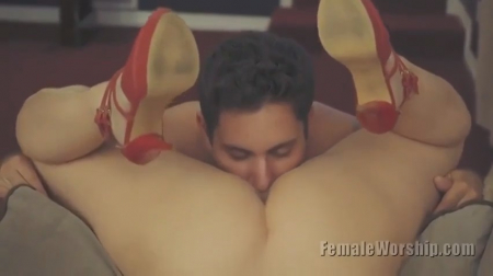 Деваха в босоножках легла на живот, закинув ноги и немного разведя их в стороны. Сзади при этом торчит голова парня, который старательно вылизывает дочиста ее влагалище. Рыженькой одновременно и кайфово и смешно. Она в мыслях представляет себя королевой, каждый мужчина подчиняется и выполняет любые фантазии. Просто нравится человеку быть выше других. Глаза закрываются от удовольствия, а к хорошему быстро привыкаешь, потому телочка быстро прервала кунилингус, повернувшись лицом к пиздолизу.