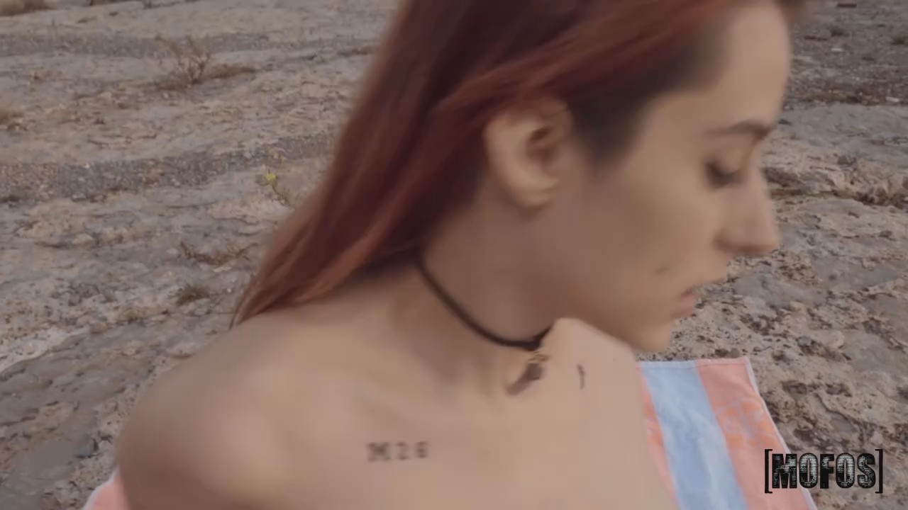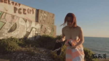 Взволнованная девушка остановила прохожего, рассказав ему забавную историю как одежду вместе с телефоном смыло водой и последний теперь не работает. Так как рыжая только что вылезла из воды - ей очень холодно и сейчас бы не помешал полотенец, что повязан на поясе незнакомца. Он без проблем остался голым, а телочка попросила подержаться за его начинающий подниматься пенис. Получив на все разрешение, она села на корточки, взяв кожаную флейту на зубок, после чего попросила трахнуть прямо на пляже перед домиками, откуда доносятся голоса других отдыхающих людей. Выходит она обменяла полотенец на секс.