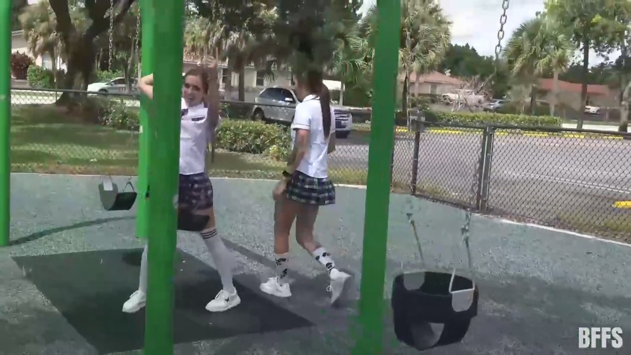 Сразу три страшненьких школьницы пропустили уроки. Показывая средние пальцы в сторону учебного заведения и всячески ругая это место они пошли веселиться по улицам неподалеку, заглянули на закрытую детскую площадку, не предназначенную для таких дылд. За спиной послышался голос охранника - он погнался за девчатами, но они успели смыться. Это пока что. Забежав в дом к одной из подруг, они сняли форму и, оставшись в одинаковых купальниках, занялись двойным кунилингусом. В дверь кто-то сильно постучал. Это был тот самый охранник, выследивший шлюшек по gps и собирающийся их сдать в полицию. Но у них есть кое-что, благодаря чему им ничего не будет. Конечно речь идет о писечках.