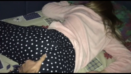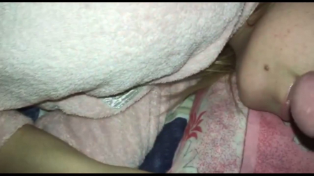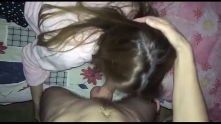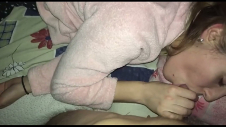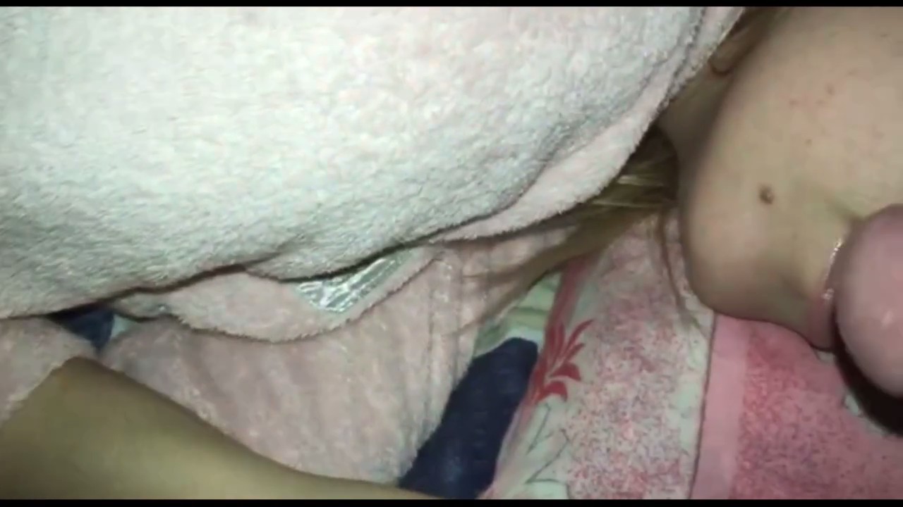 Молодой парень с камерой ночью сидел за компом, а когда пошел к своей барышне, та уже спала и лишь немного ворочалась. Извращенец достал хуй и стал гонять глядя на лицо подружки, трогать ее за задницу через домашние спортивки, а когда та перевернулась нормально, то тихонько попытался пропихнуть его в закрытый ротик. Вот тут подстава и палится: даже слышно, как он шепотом скомандовал сделать вид, будто она просыпается и начинает нормально сосать. Ленивый тип лег на спину и просто снимал как голова работает, а рука придерживает. Окончания у ролика нет.