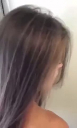 Мастурбирует игрушкой стоя попкой к зеркалу