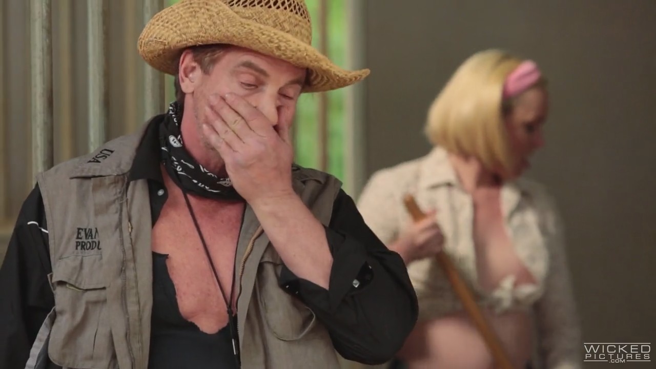 Хозяин ранчо решил показать свои владения друзьям. Мужчина привел двух друзей, но во время осмотра ранчо наткнулись на нерадивую работницу. Короткостриженная блондинка не огорчилась, когда ее стал ругать хозяин, она предложила отсосать трем мужикам. Друзья хоть и опешили от неожиданного предложения, сразу же достали члены и блондинка приступила к делу. Сучка с маленькими сиськами встала на колени и удовлетворила случайных любовников.