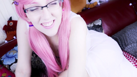 Розововолосая девка поприветствовала своего зрителя и показала нам свои большие сиськи с внушительными окружностями вокруг сосков. Расположившись на боку, телочка в очках принялась засовывать пару тонких пальчиков в попку. Уже здесь ее ножки выглядят очень сексуальными. С лицом может не так повезло, но вот фигуркой природа одарила как надо. Неспроста рядом лежит здоровенный черный фаллоимитатор. Им она постепенно вошла внутрь задницы, показывая как можно сохранить девственность, если трахаться только анально. К концу прикусывая губки, онанистка уже вовсю распрыгивалась на очень длинной секс игрушке.