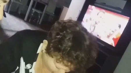 Женушка поздно вечером пришла домой не одна. Она привела старую подругу (тут и про возраст тоже) поболтать и оставить ночевать. Ее муженек помоложе, как-то так получилось, что супруга предложила осчастливить его минетом вдвоем. Стягивала трусы гостья, которая похвалила "какой обалденный член". Он первый раз подобным образом изменяет при жене, которая присоединилась чуть позже, а сам снимал на какой-то телефон или камеру не очень, плохо снимающую в темноте. Пышная женщина дала кончить себе в рот и призналась, что так возбудилась, что видимо кончила без прикосновений.