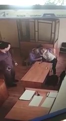 Наверное, много светит одному маргиналу, что сидел со своей бабой за столом друг напротив друга. Она перевесилась к своему мужику и начала отсасывать маленький хуец, стараясь как можно сильнее опустить голову вниз, чтобы никто не видел. Но один из правоохранителей пришел много раньше нужного и явно заметил, что парочка мутила отсос прямо в зале суда - те, увидев постороннего, сразу зашевелились и стали прикрываться. Именно благодаря тому менту, коллеги, вооружившись сотовым телефоном, отправились к монитору просматривать запись, где убедились в зашкваренном рте бабенки.