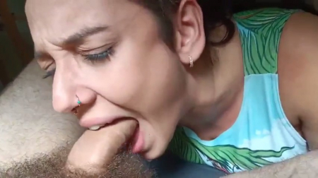 Мама дорогая, как же девочка старается доставить удовольствие своему мужчине без рук, только ротиком. Он сам процесс снимает крупным планом, а она еще театрально старается, издает звуки, проглатывает и строит глазки. Не девушка, а прелесть, к тому же не считает стремным обсасывать волосатые яйца, а потом в течение нескольких часов постепенно выковыривать из зубов волосы с лобка. В течение всего ролика она всего несколько раз схватилась за ствол, но только по техническим причинам. В конце чувак заметно напрягся, стал спонтанными движениями просовывать хуй между щек - товарищ спустил.