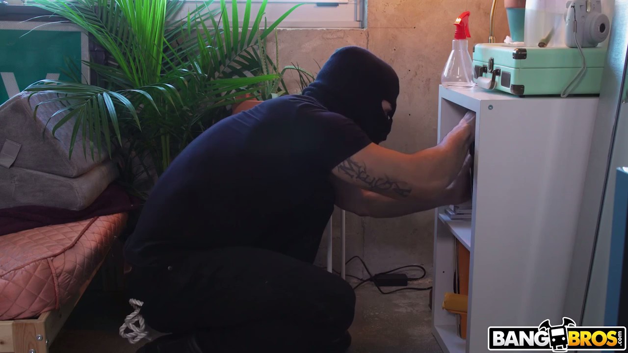 Носатая девушка принимала водные процедуры в душе, потому из-за шума воды не слышала как ее входную дверь взломал вор, начавший сходу искать чем тут можно поживиться в чужой квартире. Но, к его великому сожалению, ничего не оказалось достойного внимания воришки, потому он решил отыграться на хозяйке, которая намыленная трясла сиськами и жопой. Приоткрыв дверь, незнакомец стал подглядывать за своей будущей жертвой, а когда та почувствовала поток холодного воздуха, пошла проверить почему дверь стала вдруг открытой. Именно в этот момент вор-насильник напал сзади, затащил зажав рот обратно в ванную, показал лицо, которое понравилось девушке, связал ее руки вместе и поступил как должен был поступить мужик с потаскухой.
