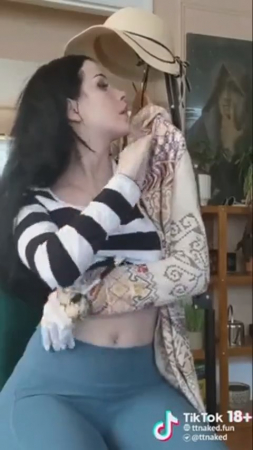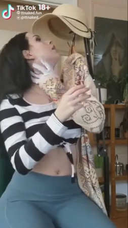 Барышня сняла на телефон эротическое видео для Тик-Ток, хотя кажется это перезалив и оно очень старое, в котором единолично исполняет пантомиму, будто некий дерзкий мужчина под музычку заставляет мастурбировать девушку-мима - рукой прикладывает ее ладонь к киске, показывая как нужно двигать вверх-вниз. В этот же момент невидимый партнер вываливает красивые сиськи из лифчика, сжимая их между пальцев и повернув симпатичное лицо к себе для поцелуя.