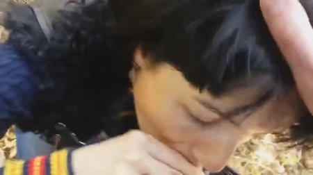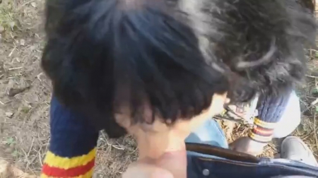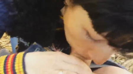 Мужичок вместе с темноволосой крашеной подругой отправился погулять в местный парк. Так как времена наступили холодные, многие собачники сидят по домам или гадят ими возле домов на прилегающих территориях, а значит здесь в лесочке почти никого не встретить, кроме самых отчаянных. Он записывает на телефон крупно как девушка отсасывает ему хуй, постоянно ноя на счет съемки - просит прекратить и тогда она дососет. Спасло чувака то, что он уже собрался кончать ей в рот и не осталось времени больше выпендриваться, но еще более забавно, что он испачкал ее одежду, из-за чего та попросила салфетку под заразительный смех.