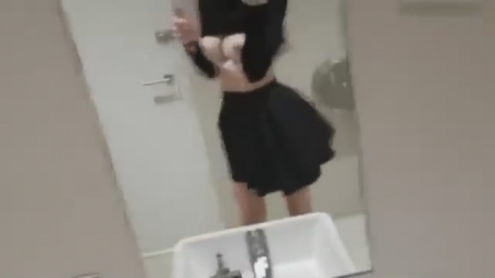 Помастурбировала перед зеркалом в туалете какого-то заведения