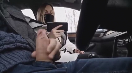 На ходу в машине дрочит парню