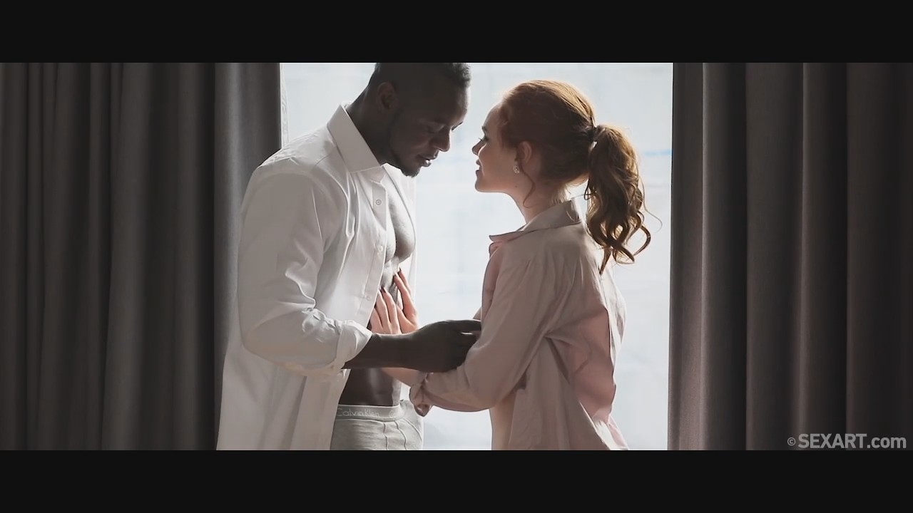 Ох уж этот томный взгляд высокого чернокожего парня в окно. Благо так бессмысленно долго стоять не пришлось, подоспела рыжая подружка, нежно поцеловавшая бойфренда, решительно поменявшая локацию поцелуев на более низкую. Долго работая ротиком, девушка легла на кровать, раздвинув ножки на не менее продолжительный кунилингус под романтическую музыку. Ждет нас впереди нечто среднее между эротикой и порно, только с половыми органами на весь экран. Почти все время любовная парочка провела в миссионерской позе целуясь, а также глядя друг на друга любящими глазами без выраженного окончания.