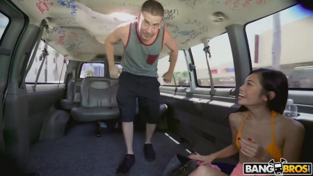 Прожженные пикаперы разговорили прохожую. Азиатская худышка сделала бы правильно, если бы поступила как планировала с самого начала - просто пройти дальше не разворачиваясь, но языкастый парень убедил поговорить 5 минуток. За это время он рассказал свою цель пребывания как видеоблоггера в Майами, ему прямо-таки интересно побольше узнать про город и его население, про синюю водичку. Витающий запах денег заставил девку сесть в минивэн к нескольким громким незнакомцам, несмотря на наличие бойфренда, к которому спешила крошечная потаскушка. Растянув ее киску большим членом, ребята оставили ее на улице ни с чем, весело умчавшись в закат.
