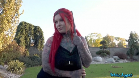 Прохожий услышал как сама с собой ругается девушка за забором. Он поспешил забраться на него чтобы проверить, что там у нее все в порядке. Хозяйка оказалась достаточно открытой к разговору и она пожаловалась на богатого бывшего мужа, с коим она развелась и теперь занимается уборкой зеленой территории перед продажей дома. Что ж, это довольно хорошее место, а в кармане помощника есть достаточно много денег, чтобы не продавать участок еще какое-то время, да и рыженькая очень даже хороша, особенно ее здоровенная грудь. Приняв наличность, пышка отдалась незнакомцу на траве и была совсем не против спермы другого мужика после мужниной.