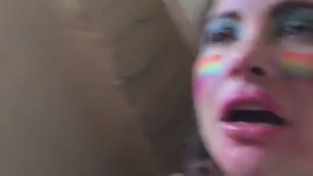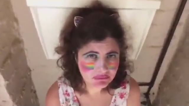 Толстая бабенка разукрасила лицо в поддержку сексуально левых движений. Она из себя строит всю такую невинность, радуется большому котику на ручках, а сама сразу же принялась ласкать собственную киску через трусики. Вместе с оператором чмошница проследовала в сортир, где посидела пару минут возле унитаза, на который села и начала сосать, да так глубоко, что затылком чуть не разбила унитазный бачок. Результатом отсоса явилась сперва на чуть-чуть высунутый язычок чмошной леди, которая продолжила ролик собственной мастурбацией, за что еще получила поток мочи в лицо и любовный поцелуй от приятеля.