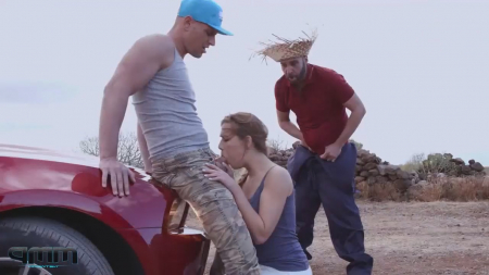 Бандит приехал разбираться со своим денежным должником, который раньше ему всегда поставлял девочек и не только. На сей раз пришлось расстаться со своей пассией. Зовут ее Роза и она обычная селянка, не совсем понимающая почему должна быть продана за 2000 евро в приказном тоне. Хулиган заставил отсосать его член, считая стоимость на увеличение с тысячи, потом скомандовал сосать своему предыдущему владельцу. Минетом дело не завершилось - здоровяк заставил трахать бедняжку Розочку на багажнике, а потом сам занял место в ее вагине и попке. Завершив групповой акт, он посадил в багажник рабыню, увезя симпатягу в неизвестном направлении.