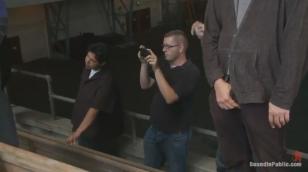 Игра любимой команды отменена. Куча мужиков в полутемноте заняли свои места и уже не знали чем себя занять - не домой же идти, ей богу. Но ничего, мужики всегда найдут чем себя развлечь, не зря же из игрушек у них есть хуй. Поглазеть игру приперся еще один 19-летний мальчишка, вытянувший короткую соломинку. Не планировал бедолага заниматься сексом, тем более в пассивной версии, но его просто заставили, привязав к деревянной опоре. Парня принудили сосать, дрочить руками за спиной чужие хуи, он получал по лицу и яйцам болезненные удары, потом его высвободили, оставив петлю на шее и оттрахали кучей людей в задницу. Единый букет разнесся по всем организмам. В финале невезучему закончали лицо и рот.