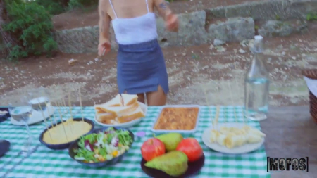В честь годовщины молодой супруг организовал приятный сюрприз - он приготовил (по большей части заказал) еду для дамы сердца и выложил поздравления с совместной фотографией. Попросив закрыть глаза рукой, муж проводил до деревянных столиков со скамейками, которые уже ждали любовников. Приятно удивившись, худенькая итальянка тоже решила зайти с козырей, показав попочку в которой вставлена анальная затычка. Оставив еду на потом, парочка занялась сексом: мальчик дал пососать толстый хуец, а девчина оседлала его сверху своей красивой задницей. Сооружения из дерева отлично подошли, чтобы расположить кареглазую девушку и закончить праздник на природе спермой в ротик.