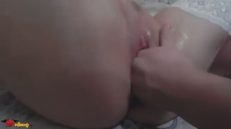 Мужики веселятся глядя как один из них орудует пятерней в русской пизде. Она уже вся влажная, даже мокрая, а сам мужчина пытается добиться повторного разбрызгивания от оргазма, уговаривая солнышко брызнуть еще раз. Стонущая баба лежит на спине, она не может пошевелиться, лишь к концу не выдержала и сжала ноги вместе, ведь постоянный кайф стал очень даже болезненным. В итоге полторы минуты блаженства крупным планом вагины между ножек в белых чулках и что-то наподобие фистинга.