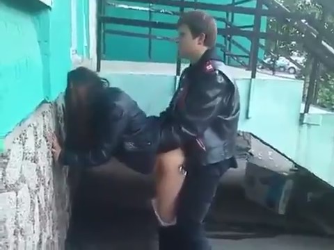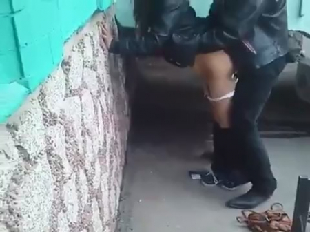 Два пьяных тела выгуливали по улицам города педовку. Пошлые разговорчики и шуточки привели к тому, что телку взяли на слабо: потрахаться где-нибудь в подворотне. Удачным местом оказалась черная лестница жилого многоквартирного дома, где ребята встали сбоку. Самый упоротый и явно с хуем во рту говнарь остался сниматься трахающихся стоя, слушая как телка стонет, отвернув лицо в сторону. Так как это был всего лишь спор, не обязательно оказалось заканчивать дело до конца. Со спущенными штанами подруга говнарей стала собирать манатки с земли, чтобы пойти дальше бесцельно шариться по городку.