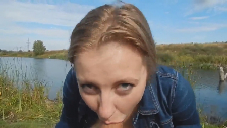 Отправившись к себе на дачу за город, пара делает остановку для поссать и чтобы размять кости. Прогулка окончилась возле речки, где мужчина лег на траву, достав свой хуй перед подругой, а она расстегнула джинсовку, вывалив здоровенные буфера. При съемке крупным планом она сделала качественную пососаку, окончившуюся слабыми выстрелами малафьи в открытый рот, откуда та падала обратно вниз под шум проезжающих по трассе автомобилей где-то неподалеку.
