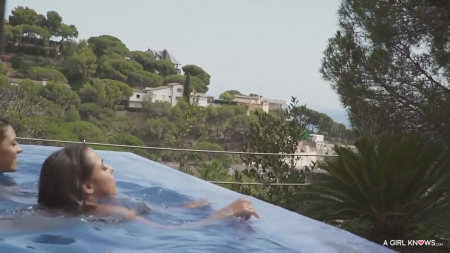 Лесбиянки на краю бассейна с превосходным видом на богатый районHD