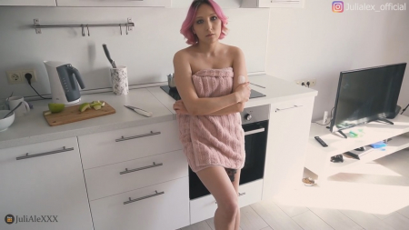 Крашеная в модный цвет фуксии с утра находится дома в одном полотенце, готовит себе и коту завтрак. В это же время входная дверь открывается ключом арендодателя и он проходит на кухню, пугая временную хозяйку, которая не платила за аренду последние два месяца. Эта стерва еще и недовольна, что парень вламывается в собственную квартиру и предъявляет за отсутствие платы. Выход есть всегда, например, можно использовать входы: шлюха должна отсосать и дать в жопу, молодой человек ее ничего не узнает, если сама не расскажет. Наверное, это стоило того, чтобы сэкономить достаточно времени и средств до следующего платежа, а также получить удовольствие. Никогда не сдавайте квартиры знакомым и друзьям, иначе придется пугать выселением ментами когда они наглеют!