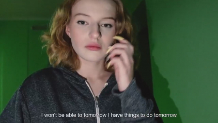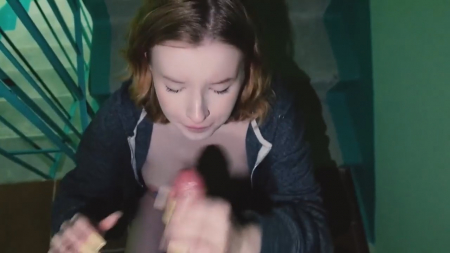 Молодой человек посреди ночи посетил свою любимку. Она не смогла его впустить домой, так как в однушке сегодня находится мамка - она не ушла на работу как планировалось. Чувак не дрочил уже несколько дней. Ему было предложено хотя бы просто посмотреть на сиськи, но этого ему показалось мало. Было решено заняться этим прямо в подъезде. Парочка потрахалась возле перил стоя рачком, стоя лицом к друг другу, что крайне неудобно, после чего юный бойфренд кончил подружке на лицо, попросив как-то незаметно проскочить мимо мамаши в ванную и отмыть лицо little hamster с волосами от спермы.