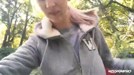 Простенькая на внешность соотечественница гуляет по лесу вместе с молодым человеком, держа камеру в руке. Она тут же игриво предлагает куда-нибудь зайти, что означает сворачивание с протоптанной тропинки чуть-чуть глубже за деревья. Она садится на корточки и делает минет своему спутнику, продолжая снимать свое лицо, все время стараясь держать его в кадре вместе с толстым пенисом. Бойфренд тоже решил побаловать подругу, даже не успев кончить - он начинает впиваться языком глубоко в писечку спереди, а потом девчонка пригибается и кайфует когда тот сзади.