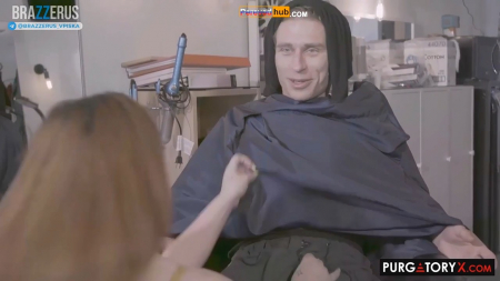 Девчонки то и дело общаются о своих парнях и сексуальных проблемах. Например, рыженькая рассказала о том, что давно не ебалась днем, да и вообще уже давно ничего такого не было. Но сегодня должен прийти симпатичный клиент, на которого она рассчитывает. Брюнетка поддержала рыженькую подружку и затаилась за вещами, наблюдая как пройдет соблазнение. Оказалось, сделать это нетрудно - кладешь ему на лицо тряпку, а сама жмякаешь яйца через штаны. Когда парикмахерша сосала, ее тут же подменила вторая, так что клиент ничего не заподозрил. Но все же ему хочется смотреть на партнера, да и каково же было удивление не одной голодной самочке, а сразу двум. Ну что ж, придется набраться в два раза больше сил, чтобы оттрахать обеих. Впереди еще записаны посетители, нужно и для них себя успеть подготовить пышнотелым девчонкам.