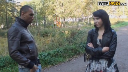 Слегка прохладное утро, а парни уже вышли на охоту за очередной шлюшкой. На этот раз ребята выбрали симпатягу, которая на остановке ждала транспорт. Разговорчивый крепкий парень завязал с девушкой непринужденный разговор и предложил погулять в парке. Очаровательная особа согласилась (второй парнишка все фиксировал на камеру). Немного отойдя от людной тропы парень принялся раскручивать телку на секс. Щедрый самец предложил показать сначала грудь, потом попку, а потом и заняться сексом, каждый раз увеличивая сумму.