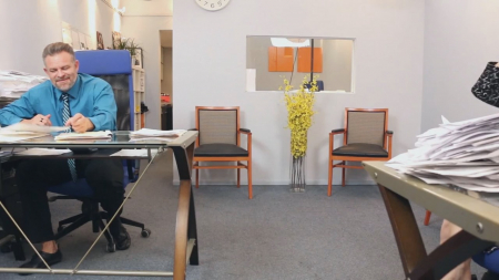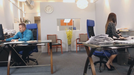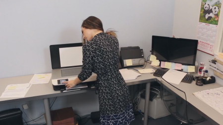 Начальник позвал секретаршу и дал ей разобрать целую кучу бумаг, сам сел рядом с девушкой, взяв другую кучу. Но очаровательная малышка вовсе не горит желанием заниматься нудной скучной работой. Секси телка пустила в ход все свои женские чары, чтобы соблазнить начальника. Для начала сделала ему расслабляющий массаж, но это не сработало. Затем отксерокопировала свою аппетитную грудь и подсунула снимок боссу, но опять мимо. Тогда стройняшка как бы случайно рассыпала скрепки и встала на четвереньки, чтобы их собрать (и при этом оголила шикарную попку). Это подействовало на босса и он отымел секретаршу в офисе, забыв о работе.