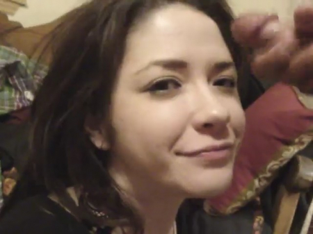 Симпатичная милашка обнаружила парня за мастурбацией - ее бойфренд дрочил себе и снимал на камеру. Но как оказалось, девушка пришла очень даже вовремя - ведь парень обожает сперму на лице девушек. А поскольку пик наслаждения был совсем близок, парень поставил телочку на колени и когда достиг оргазма, кончил подружке на лицо и снял все крупным планом.
