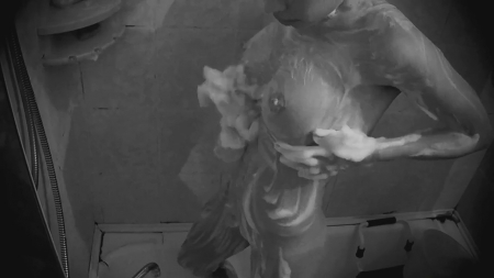 Как девушка с нормальным либидо, наша сегодняшняя героиня заканчивает свою помывку под душем мастурбацией, просто чтобы расслабиться от мирских забот. Она моется стоя, поэтому и ласкать себя будет тоже стоя, а снимает ее черно-белая камера с оттенками серого. Непонятно зачем она висит именно там и кто ее повесил, но и отличненько, зато мы посмотрим как девушка с классной грудью поливает писечку из лейки, а также подрачивает свой клитор пальчиками, держа себя за одну из грудей, отчего ей становится еще приятней.
