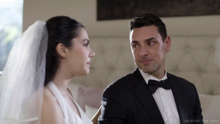 Осталось всего несколько мгновений до начала церемонии и невеста захотела продемонстрировать своему будущему мужу небольшой сюрприз, который прямо сейчас вставлен в ее прекрасную попочку. Это анальная заглушка в виде бутона цветка, а так как жених очень целомудренный и венчание проходит в церкви, он не захотел даже смотреть на игрушку. Разговор тем временем подслушал дружок невесты, который поспешил ее успокоить и заценить красоту в ее заднице, вытащив пробку и вставил туда свой член. Целый час он долбил чужую супругу, а когда кончил, помог ей надеть свадебное платье обратно.